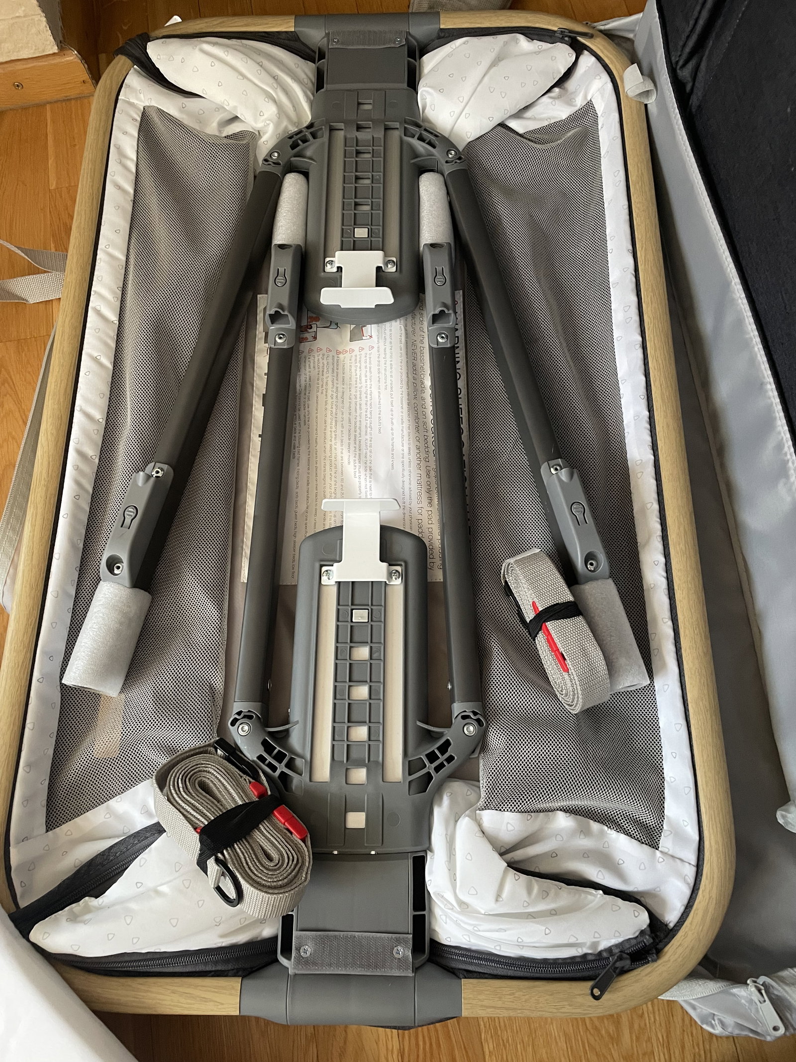 Przestronna gondola z miękkimi ściankami, przewiewnym okienkiem z siatki i luksusowym materacem piankowym zapewnia wyjątkowy komfort delikatnej skórze dziecka. Łóżeczko jest również wyposażone w wygodną półkę, na której możesz przechowywać najpotrzebniejsze rzeczy dla dziecka, takie jak pieluchy i inne niezbędne rzeczy.