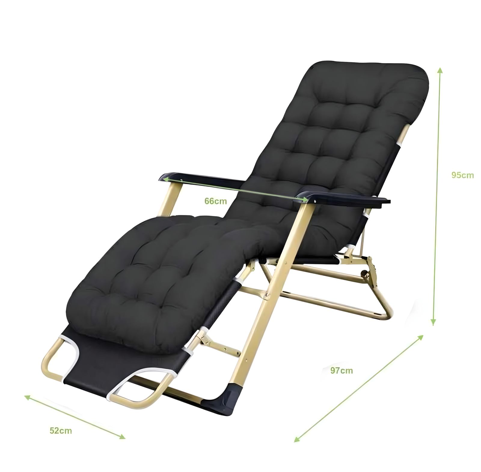 Składane łóżko ogrodowe z grubą poduszką. Wykonane z wytrzymałej siatki Textoline i malowanej proszkowo stali. Idealne do ogrodu, na plażę, taras, balkon, kemping. Lekkie i mobilne.