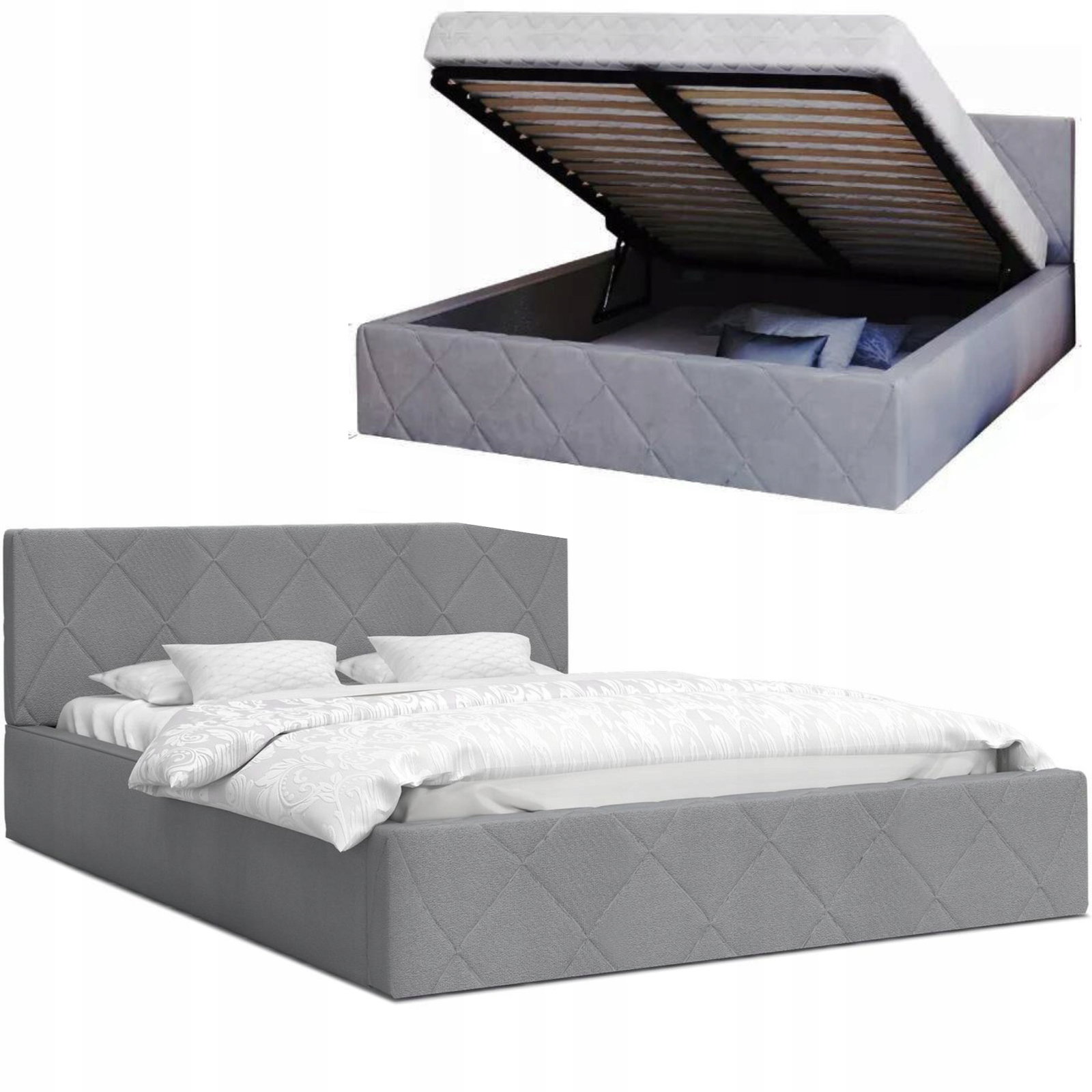 ŁÓŻKO TAPICEROWANE - PODNOSZONY STELAŻ METALOWY - SZARE - 120X200