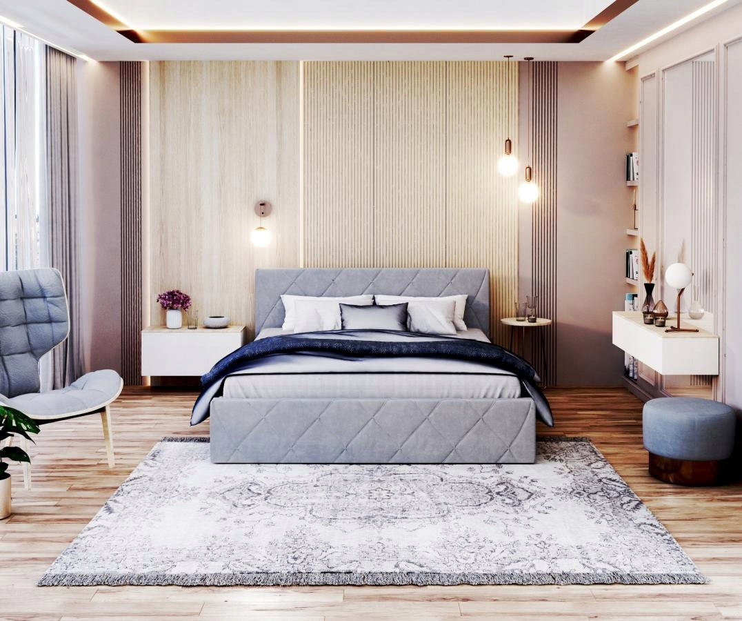 Łóżko tapicerowane CARO- TRINITY (SZARY) - 140 x 200