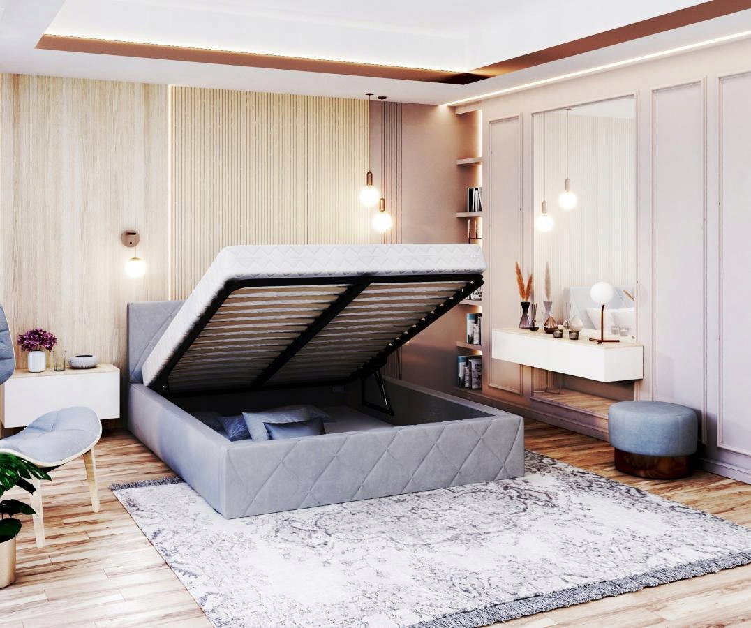 Łóżko tapicerowane CARO - TRINITY z pojemnikiem na pościel