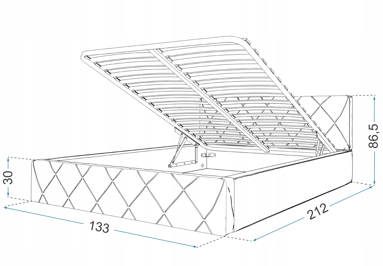 - Stelaż metalowy + 34 listwy sprężynujące. Podnoszony na "automatach". Mechanizm podnoszenia wspierają dwa siłowniki gazowe.