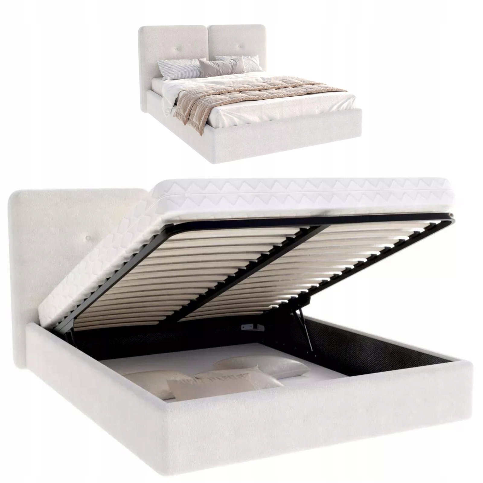Podnoszony stelaż metalowy - Stelaż wspierany jest mechanizmem podnoszenia - dwa siłowniki gazowe. Posiada brzozowe sprężynujące listwy