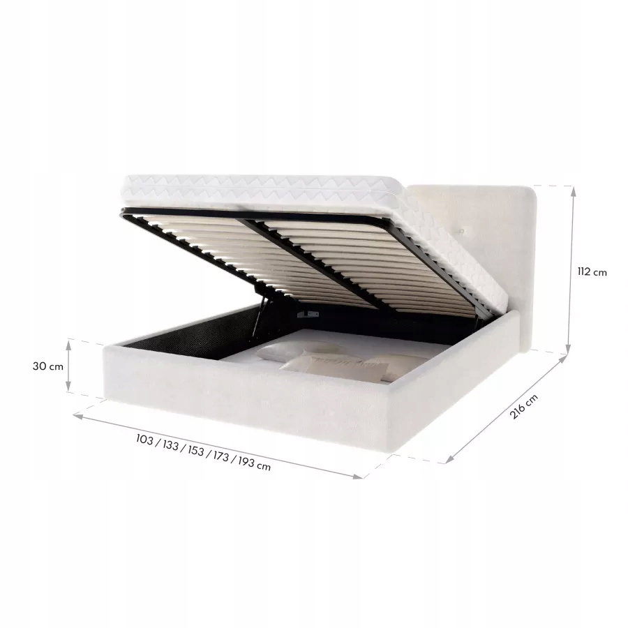 Każde łóżko powinno być wygodne, ale i użyteczne. Dlatego zastosowanie podnoszonego stelaża w modelu BEDRETTO umożliwiło wygospodarowanie miejsca na głęboki pojemnik na pościel i łatwy do niego dostęp. Dzięki temu zyskujemy dodatkową przestrzeń, którą można wykorzystać jako schowek. Przylega on bezpośrednio do podłogi, a więc można chować w nim ciężkie rzeczy bez obawy zapadnięcia się dna. Tym samym łóżko BEDRETTO to nie tylko wygodne miejsce do spania, ale i praktyczny oraz pojemny mebel.