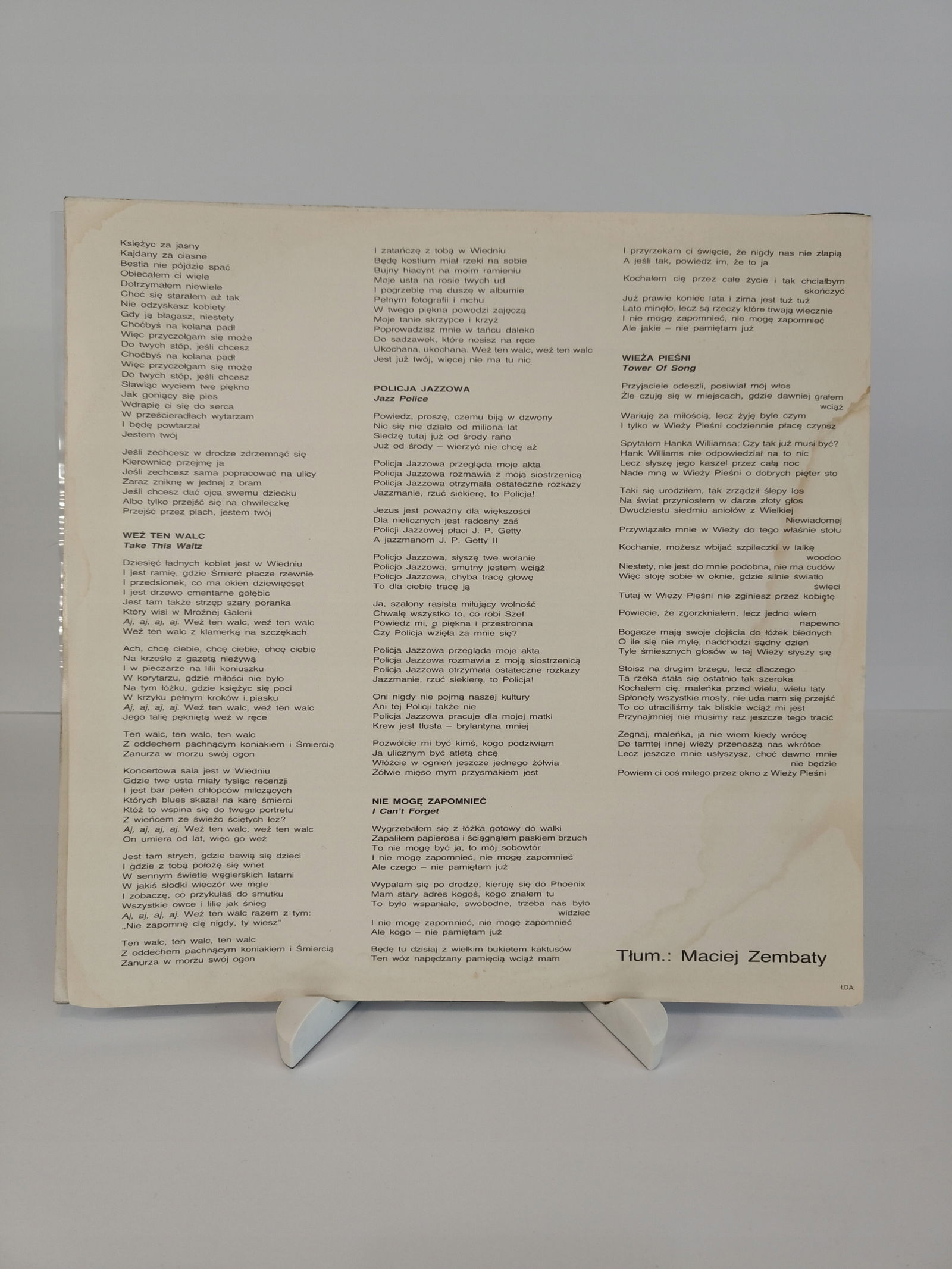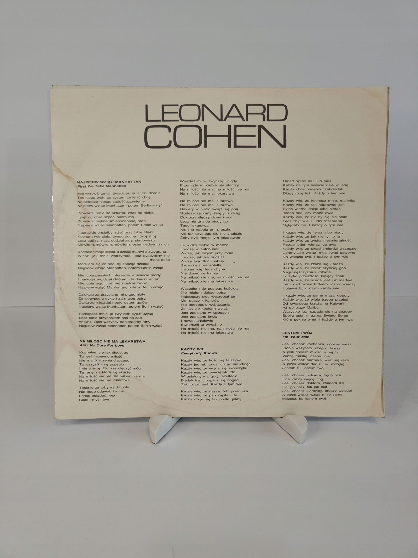 płyta: była wielokrotnie odtwarzana, ale nie odznacza się znaczącym spadkiem jakości dźwięku, mimo zauważalnych znaków na powierzchni oraz niewielkich zarysowań;