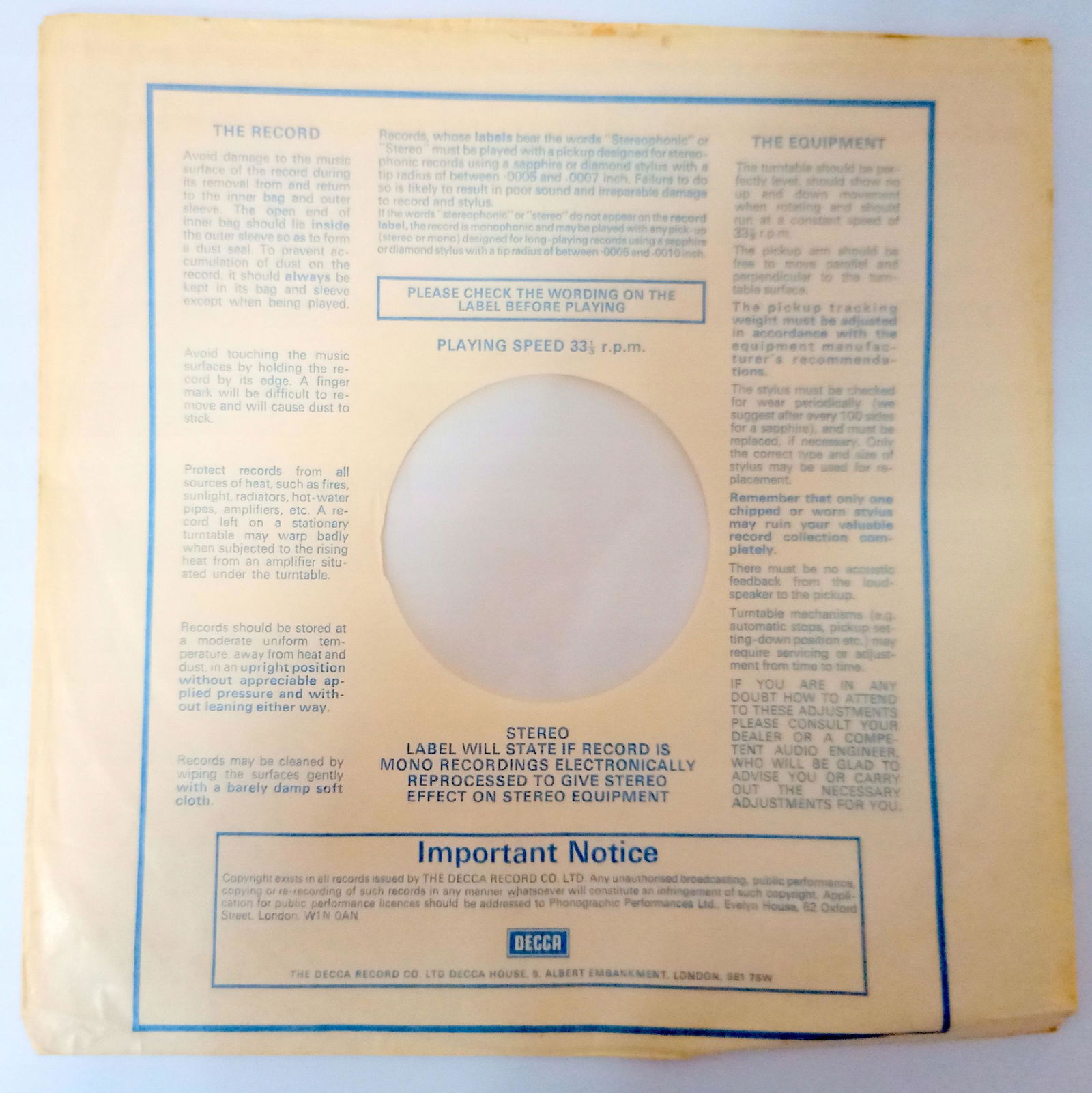 płyta: była wielokrotnie odtwarzana, ale nie odznacza się znaczącym spadkiem jakości dźwięku, mimo zauważalnych znaków na powierzchni oraz niewielkich zarysowań;