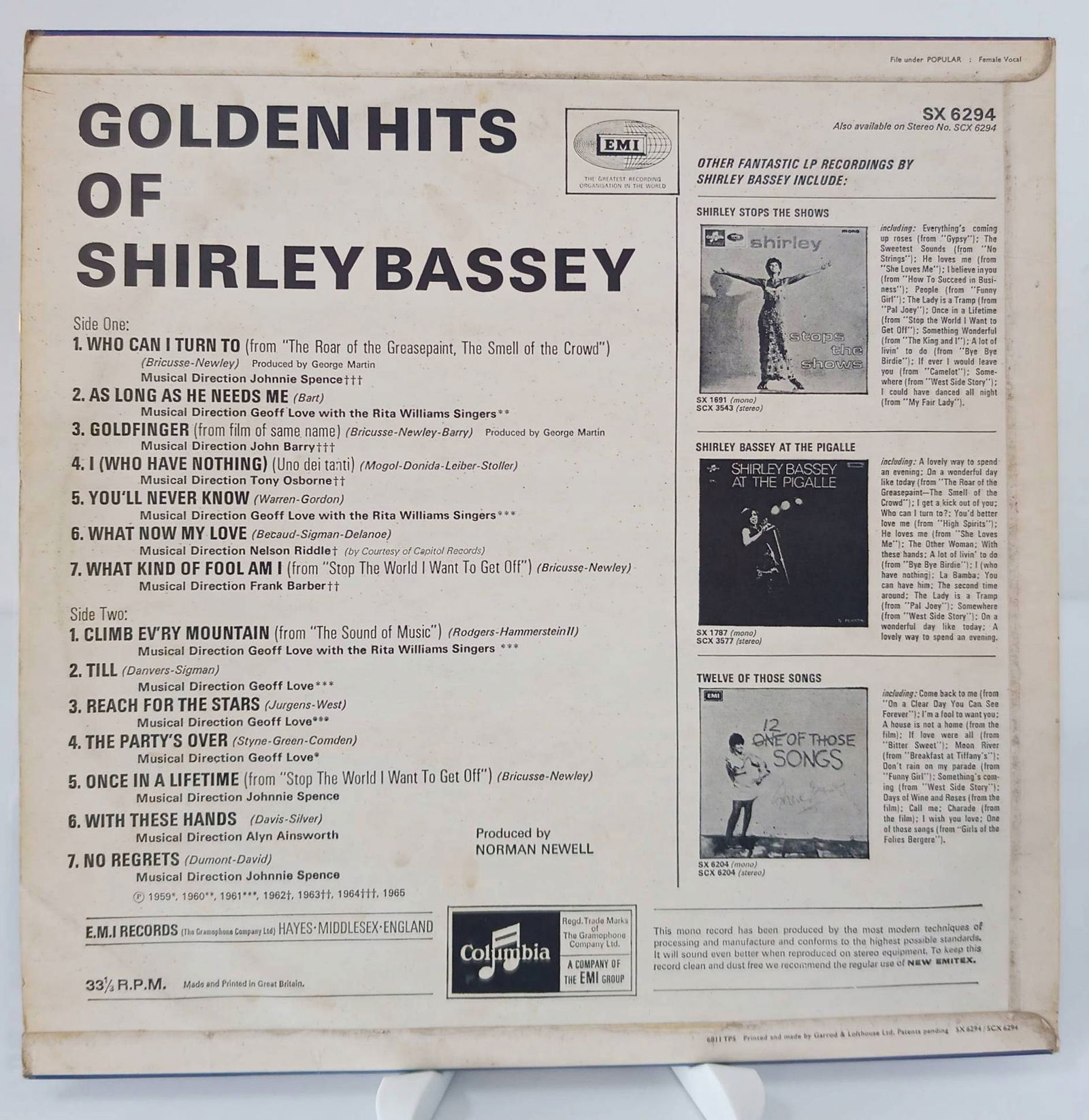 LP SHIRLEY BASSEY Golden hits of Shirley Bassey Ex