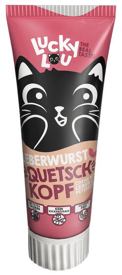 Lucky Lou QuetschkopfeQUETSCHKÖPFE od Lucky Lou – super smaczne pasty!Lucky Lou Quetschkopfe są pełne prawdziwego smaku i praktycznej wartości dodanej. Gwarantują prawdziwą przyjemność i realne korzyści, opracowane z kocim zmysłem.Lucky Lou Quetschkopfe rozpieszcza koty w wielu pysznych odmianach. Aromatyczna kiełbasa z wątróbki, pyszny łosoś, pyszny serek, miękka śmietanka mleczna i słód do przekąszenia czekają na Twojego kota. Podaruj mu dodatkową porcję witamin – jest ona dostępna także dla kociąt. Przysmaki Lucky Lou Quetschkopfe są dostępne w zamykanych tubach – bardzo łatwo je porcjować i przechowywać.Spraw radość swojemu kotu każdego dnia! Pokocha Cię i uzyska stałe korzyści: witaminy, dodatkową porcję tauryny, biotynę i efekt przeciwdziałający powstawaniu kul włosowych dzięki słodowi. Czy chcesz więcej? Łosoś, kiełbasa wątrobowa, ser i odmiany mleczne nie zawierają zbóż. A kwestią honoru jest to, że wszystkie rodzaje sera i mleka nie zawierają laktozy.Lucky Lou Quetschkopfe to nie tylko smaczna przekąska! Wykorzystaj je również do dosmaczenia jedzenia - ułatwi to zmianę diety, gdy napotkasz koci opór. Może również ułatwić podawanie kotu lekarstw.Zalety: