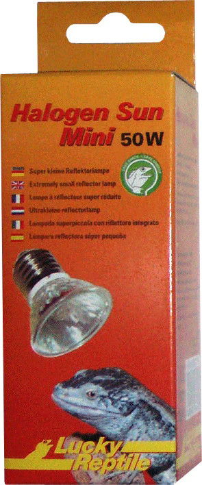 Lucky Reptile Halogen Sun MINI jest najmniejszą dostępną lampą do gniazd E27. Żarówka wystaje poza oprawkę E27 tylko 2,5 cm! Sprawia to, że jest ona idealna do stosowania w małych wiwariach i terrariach, w których normalne lampy punktowe są zbyt zauważalne ze względu na swoje rozmiary, a także są zbyt blisko podłogi. Dzięki technologii halogenowej i niezwykle wydajnemu odbłyśnikowi wytwarzają również więcej ciepła i światła niż lampy wolframowe typu spot.