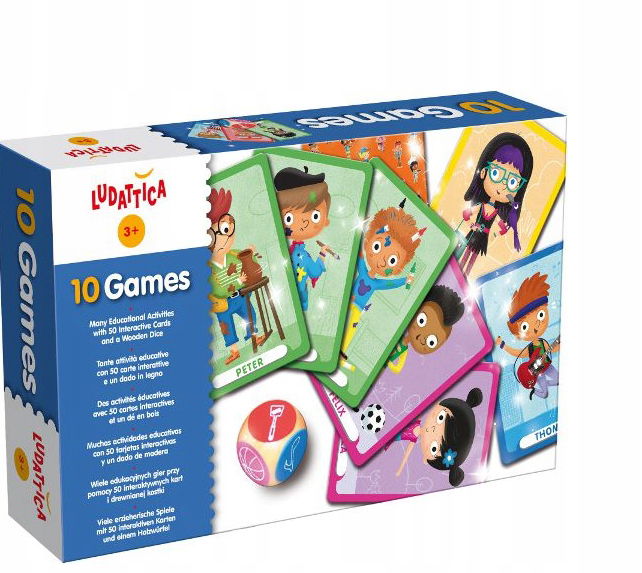 Wiele edukacyjnych zabaw, 50 interaktywnych kart i drewniana kostka. Które dziecko skompletuje najszybciej całą rodzinę? Które jest najzdolniejsze i zbuduje najwyższą wieżę? Kto wygra kolorowe wyzwanie? Zagraj również i Ty w 10 gier, rzuć kostką i wybierz grę, która odpowiada najbardziej Twoim zdolnością.
