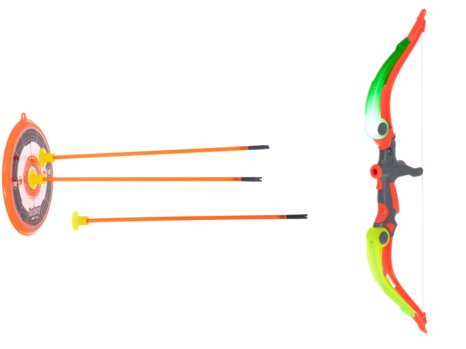 EFEKTY ŚWIETLNE – DODATKOWA FRAJDA PODCZAS ZABAWY - Łuk posiada wbudowane efekty świetlne, które dodają dynamiki i sprawiają, że strzelanie do tarczy staje się jeszcze bardziej ekscytujące, zwłaszcza w ciemniejszym otoczeniu!