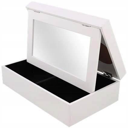 Pięknie zaprojektowane pudełka to prawdziwa ozdoba w naszych wnętrzach. Tym bardziej jeśli potrafią skrywać w środku biżuterię. Jest to doskonała propozycja na prezent.Tafla lustra dodaje formie lekkości i elegancji, a także stwarza nowe możliwości funkcjonalne. Element w postaci czarnego wnętrza pięknie dopełnia białe zewnętrzne drewno.