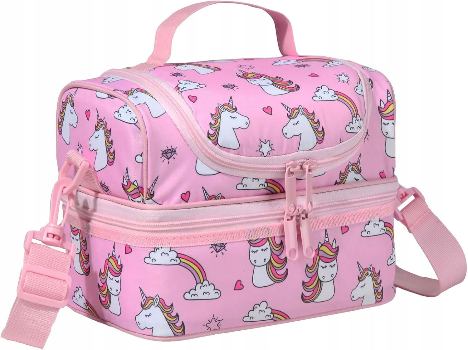 ? Śliczny motyw jednorożca w różowej kolorystyce sprawi, że każde dziecko zakocha się w swojej nowej torbie śniadaniowej!