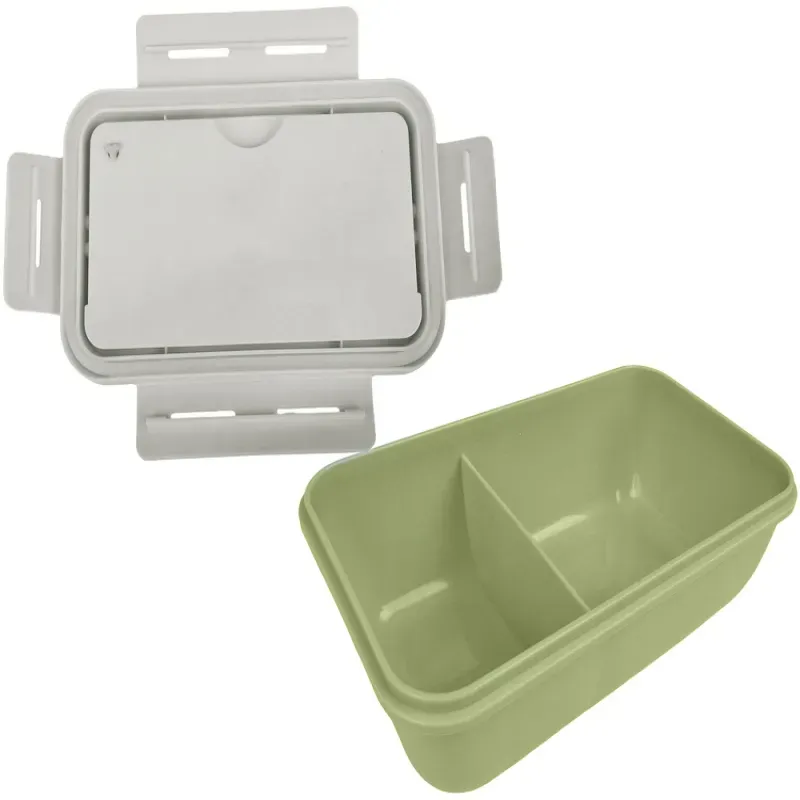 Pojemnik posiada dwie praktyczne przegródki, które umożliwiają oddzielenie składników, np. makaronu i sałatki.W pokrywie umieszczono zestaw sztućców (łyżka i widelec), które zawsze masz pod ręką. ⭐ SZCZELNE ZAMKNIĘCIE