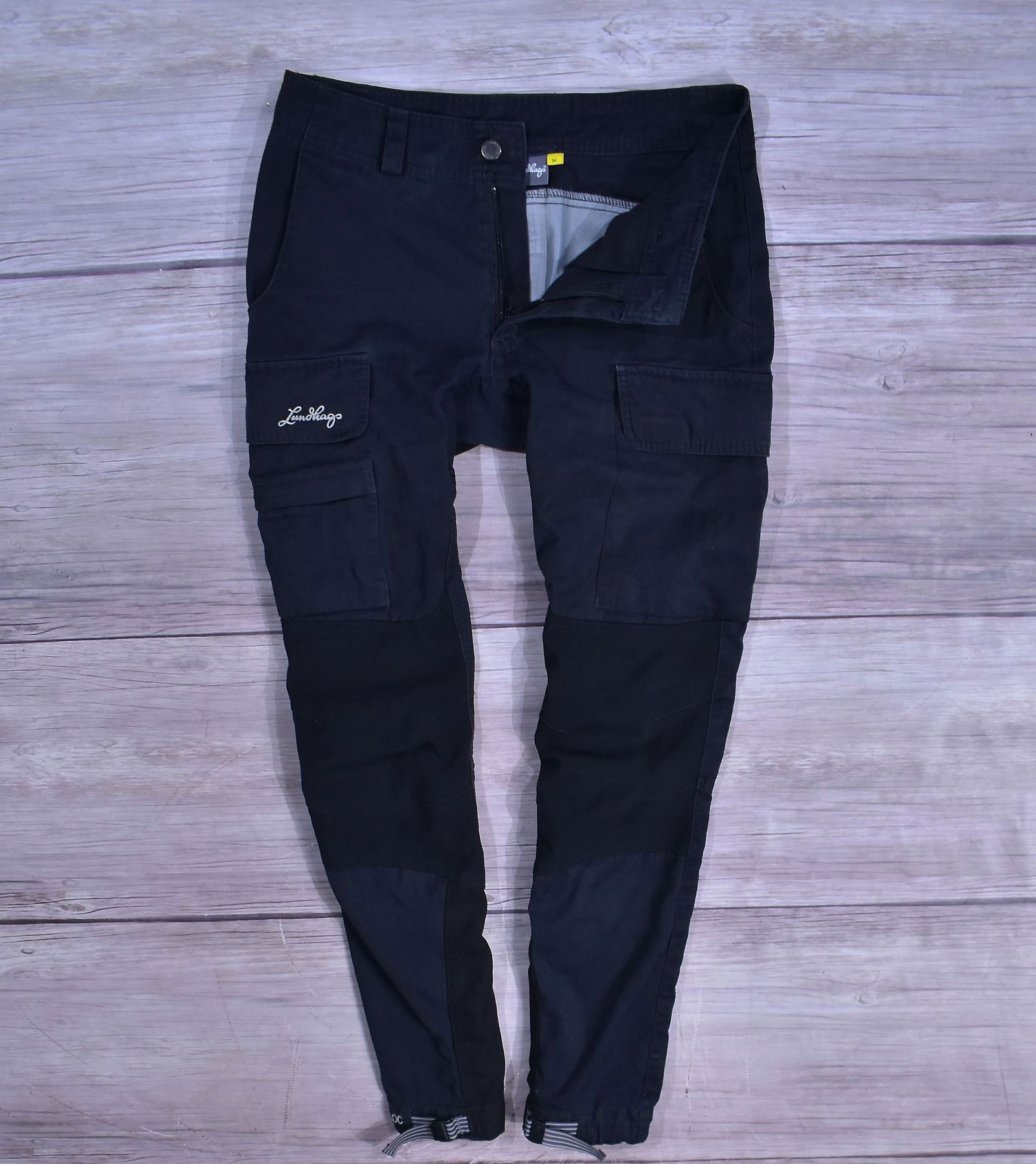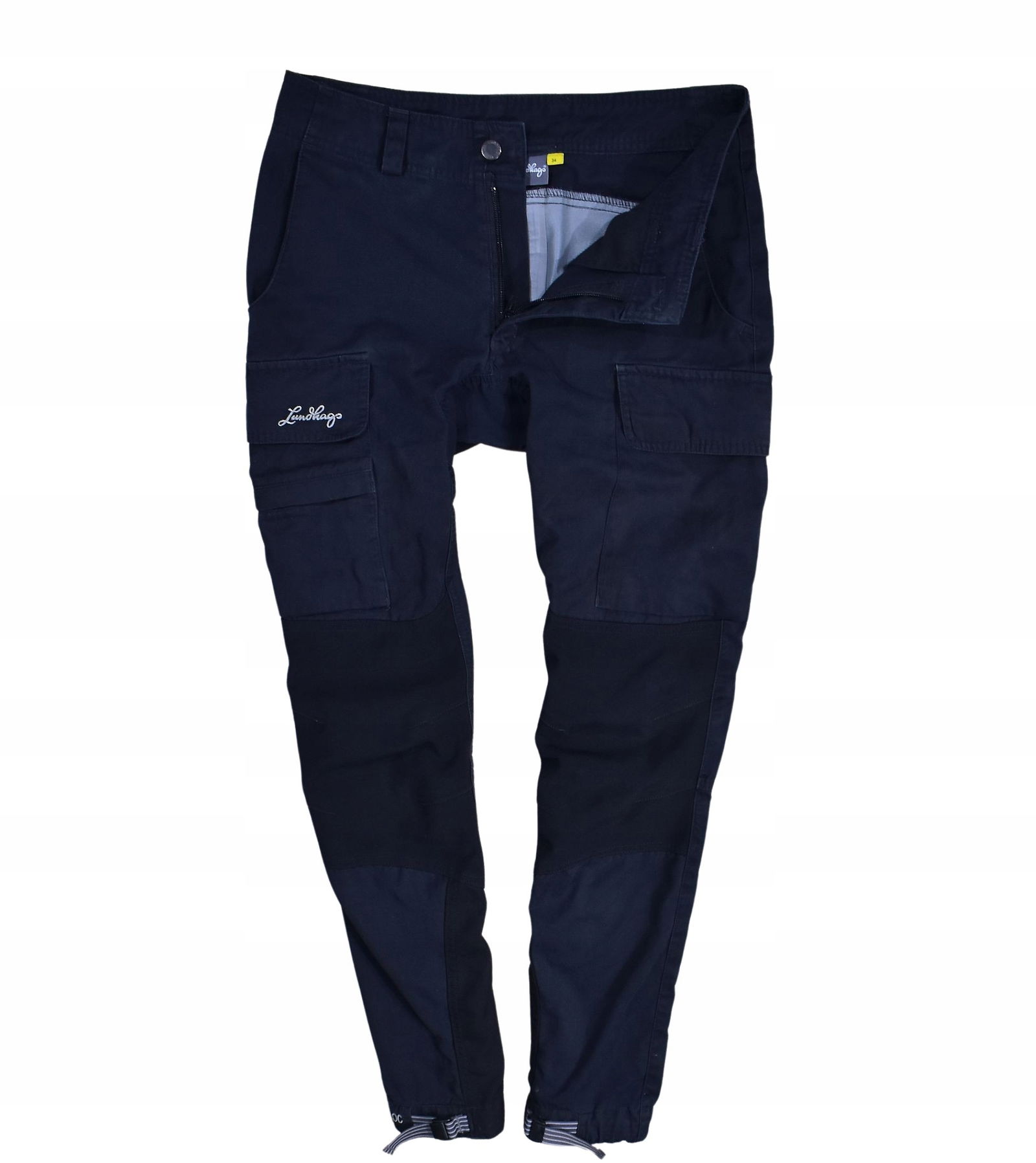 Cechy dodatkowe: profilowane kolana, regulowany dolny obwód nogawek, ściągacze w nogawkach, szlufki na pasek
