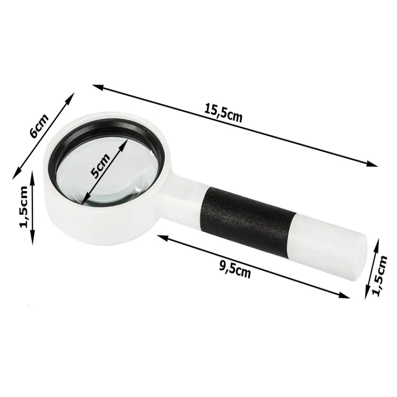 Jest idealna do oglądania biżuterii, znaczków, monet lub do codziennego użytku, dzięki dużej lupie obraz jest bardzo wyraźny i łatwy do odczytania. Lupa jest poręczna. Dzięki antypoślizgowemu uchwytowi dobrze leży w dłoni. Soczewka wykonana ze szkła. WYMIARY: