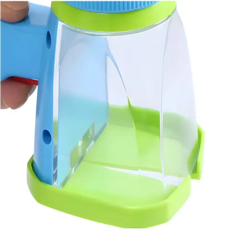 Praktyczna lupa dla dzieci umożliwiająca oglądanie owadów i małych elementów z bliska. Dzięki przezroczystemu pojemnikowi można bezpiecznie umieścić owada w środku i dokładnie go obserwować przez powiększające szkło znajdujące się na górze urządzenia.