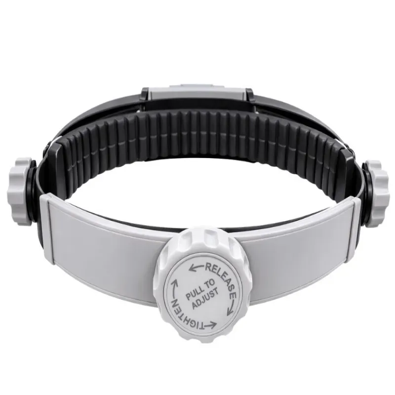 Lupa posiada regulację za pomocą dwóch pokręteł po bokach oraz dodatkowej regulacji z tyłu opaski, co pozwala idealnie dopasować ją do głowy użytkownika. Stabilna konstrukcja zapewnia komfort nawet podczas dłuższego użytkowania.
