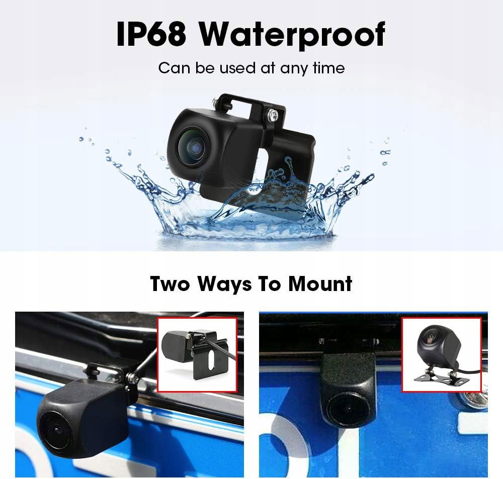 - Kamera tylna bez otworów - Łatwiejsza instalacja, dwa uchwyty do aparatu, dwa sposoby mocowania tylnej kamery. Możesz wybrać montaż na tablicy rejestracyjnej samochodu, bez konieczności wiercenia otworów. Kamera tylna 1080P wodoodporna pozwala sprawdzić sytuację za tobą bez martwienia się o warunki aparatu nawet w deszczową lub pochmurną pogodę.