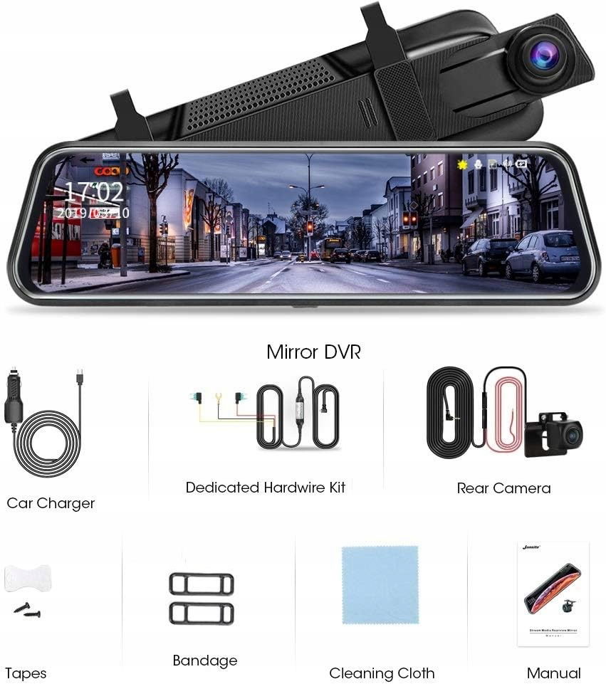 - 10-calowy panel dotykowy IPS - sprawia, że ekran LCD jest większy. Pole widzenia można również regulować poprzez przesuwanie panelu dotykowego. Dzięki szerokokątnemu obiektywowi 170 stopni pole widzenia jest trzykrotnie większe niż w przypadku zwykłych lusterek wstecznych, a obie strony drogi można wyraźnie uchwycić.