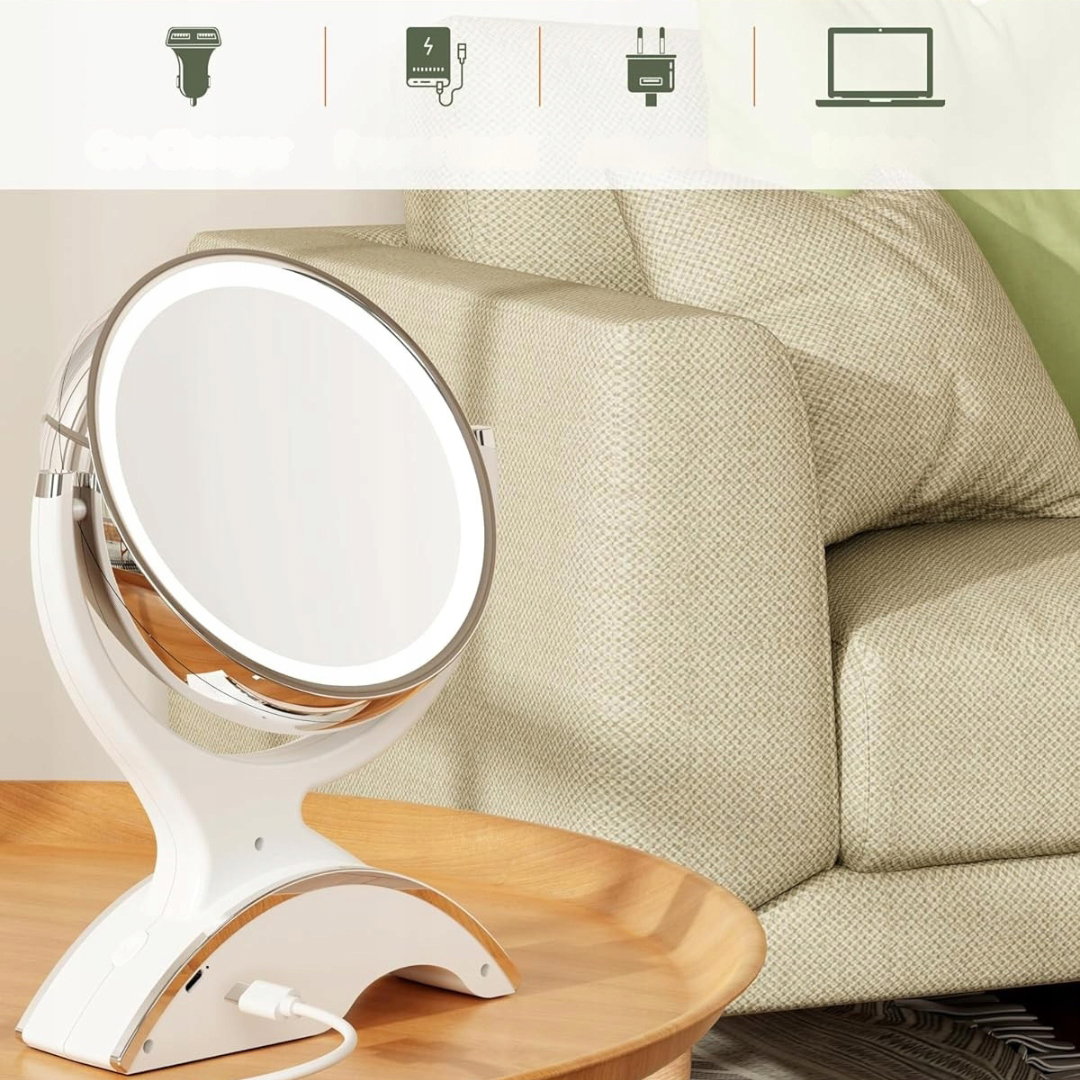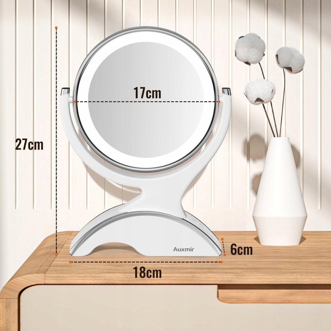 Lusterko kosmetyczne Auxmir z LED, powiększenie 1X/10X, dwustronne z 360°