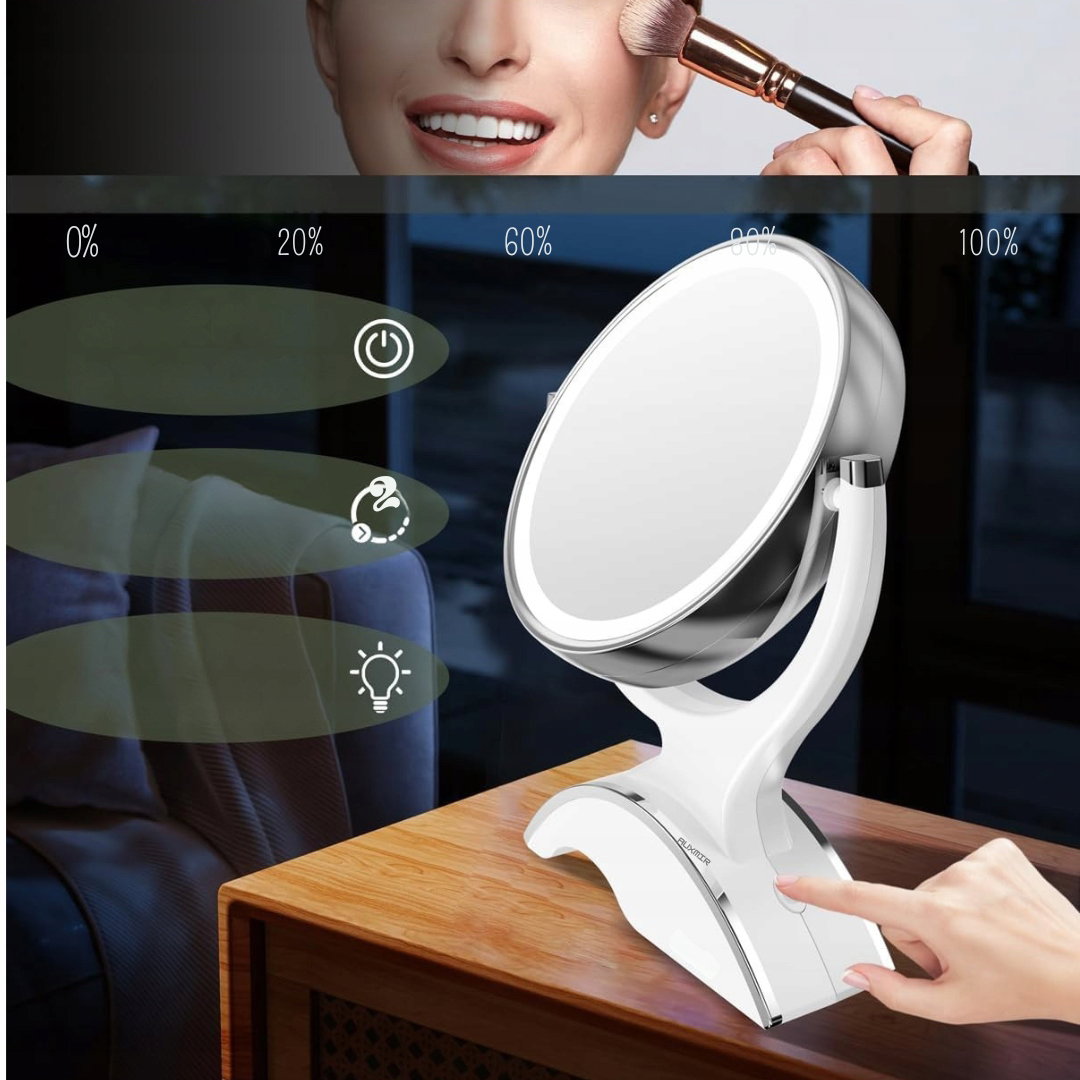 Auxmir lusterko powiększające LED 10×/1×, dwustronne, ładowalne, obracane 360°, 7 cali, regulacja jasności, do łazienki i sypialni