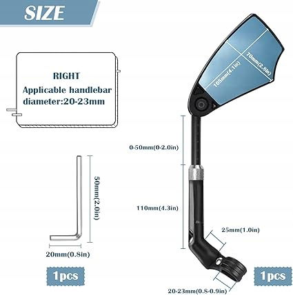 - Łatwy montaż: lusterko rowerowe pasuje do wszystkich typów kierownic o średnicy od 20 mm do 23 mm. Każde opakowanie lusterka rowerowego zawiera klucz imbusowy 5 mm. To lusterko wsteczne do roweru elektrycznego zapewnia większe poczucie bezpieczeństwa podczas jazdy rowerem szosowym.