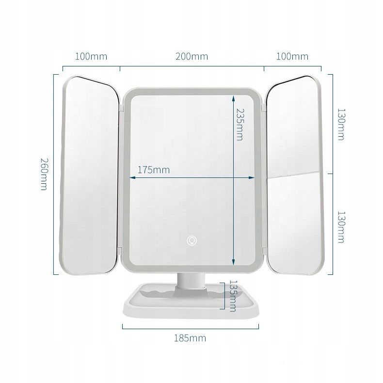 LUSTERKO KOSMETYCZNE PODŚWIETLANE LED ROZKŁADANE LUSTRO DO MAKIJAŻU PREMIUM