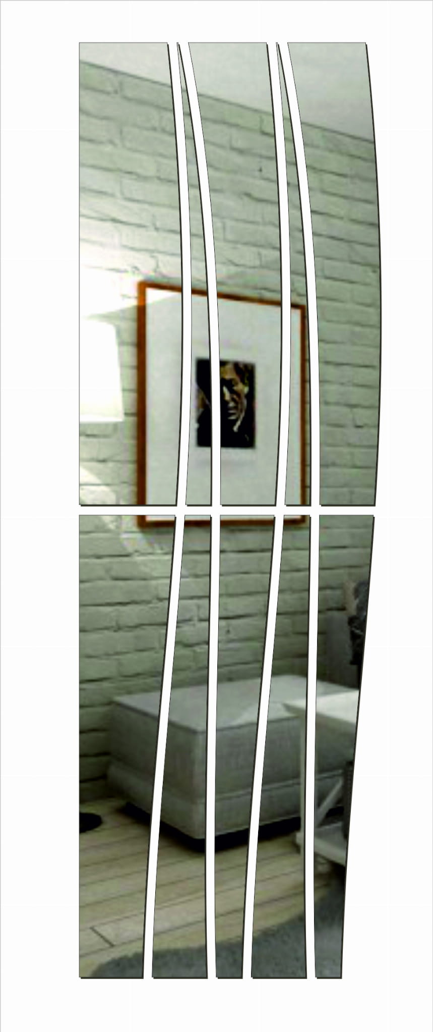 Lustro Akrylowe „Fale Blasku” to wysoka, smukła dekoracja ścienna, która łączy funkcję klasycznego lustra z efektem nowoczesnej instalacji artystycznej. Zestaw tworzą pionowe, delikatnie wygięte pasy lustra z przerwami między elementami – dzięki temu całość wygląda lekko, dynamicznie i świetnie wpisuje się w salon, sypialnię, korytarz, garderobę czy nowoczesne biuro.