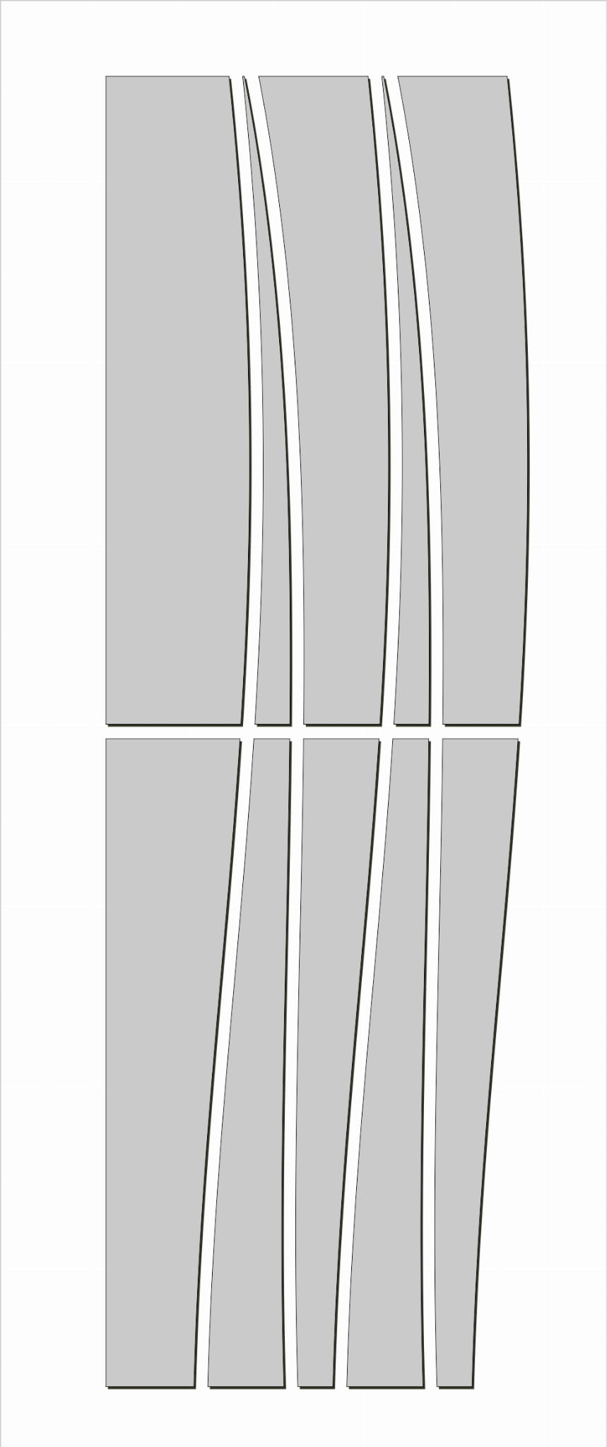 - Budowa: kilka pionowych elementów z przerwami między nimi, efekt „fal”