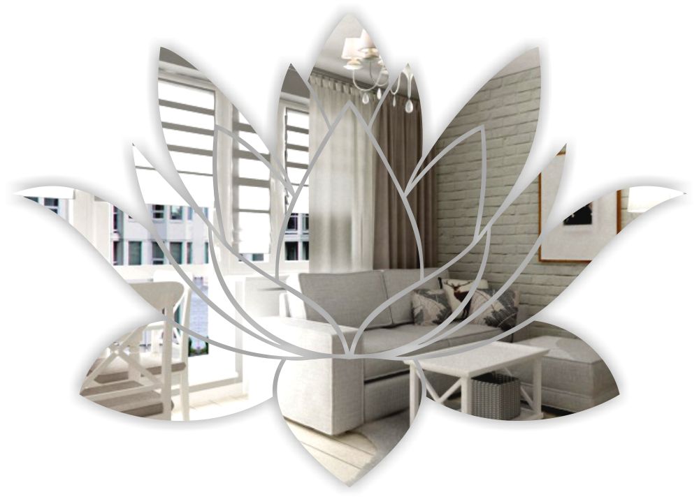Stwórz wnętrze pełne światła i harmonii z ekskluzywnym lustrzanym projektem Lotos Aurelii od pracowni KornikDesign.pl. Kompozycja oparta na motywie kwiatu przybiera efekt lekkiej, symetrycznej formy 3D, która rozświetla przestrzeń i staje się jej głównym akcentem dekoracyjnym.