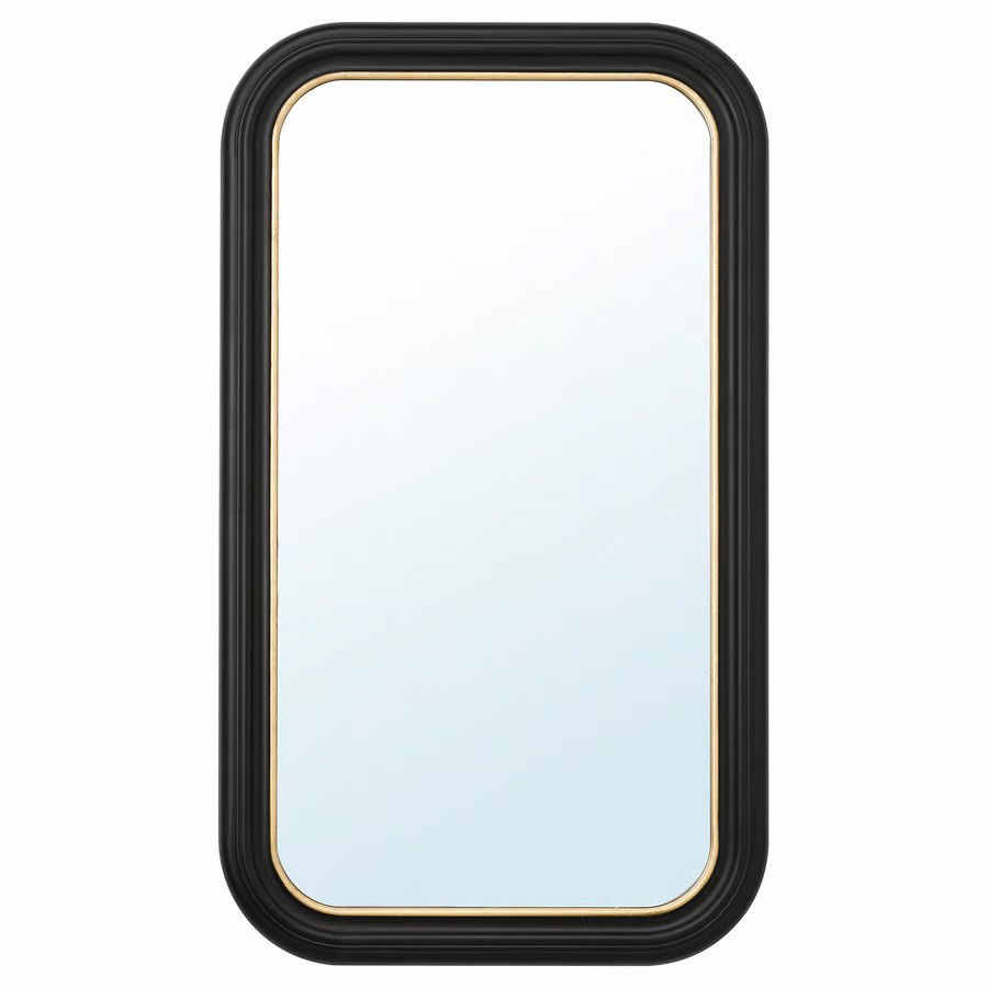 Udekoruj pomieszczenie lustrami, aby dodać mu głębi i życia. Lustro ALMARÖD ma tradycyjną matową czarną ramę z cienką złotą linią wzdłuż wewnętrznej krawędzi – aby jak najlepiej oprawić Twoje odbicie.