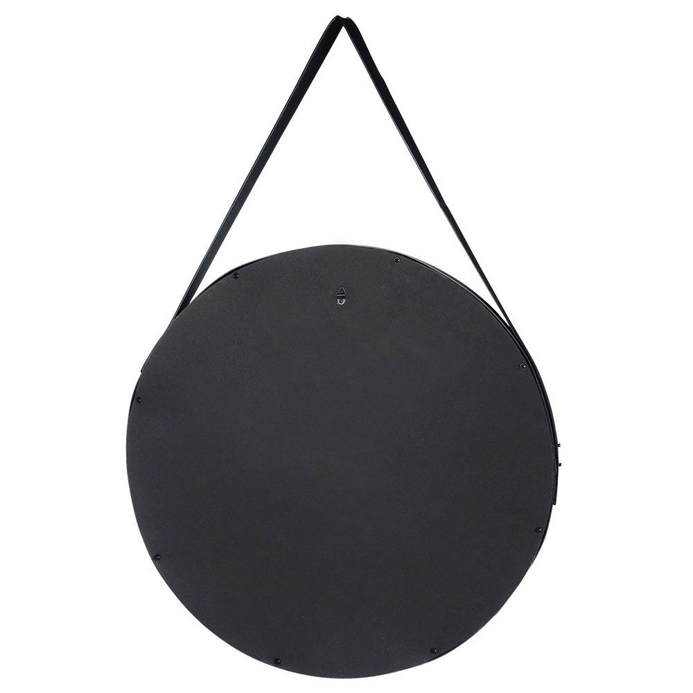 Lustro Koło Ścienne Okrągłe w Czarnej Ramie na Ścianę Duże Loft na Pasku