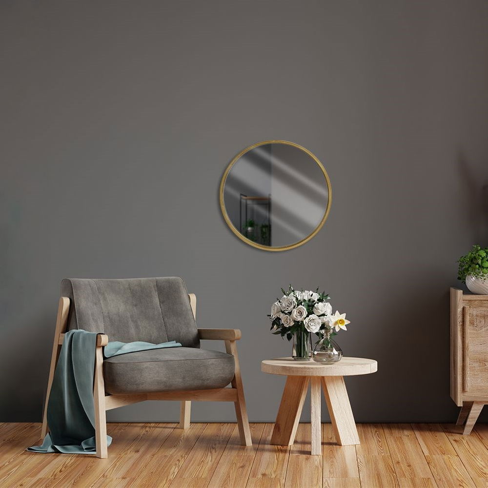 Lustro Koło Ścienne Okrągłe w Złotej Ramie na Ścianę Duże Złote Loft 30 Cm