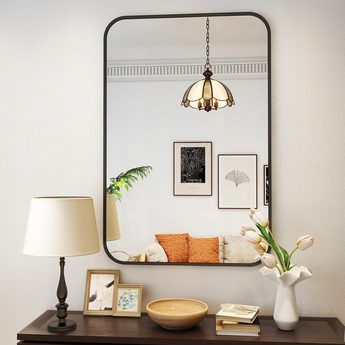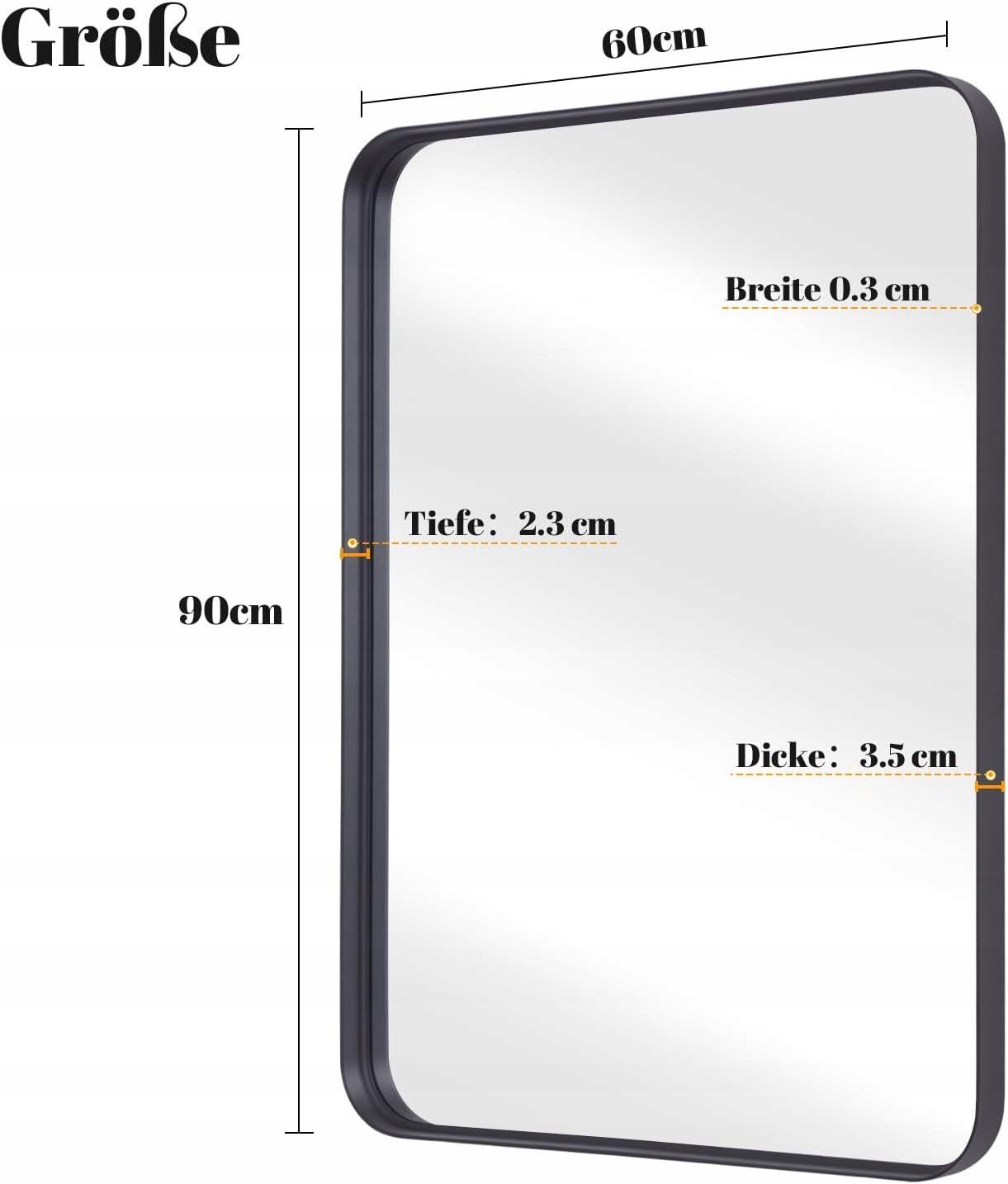 - Stylowe i luksusowe wzornictwo: rama lustra wiszącego wykonana jest z matowego stopu aluminium, a cienka i głęboka rama oraz konstrukcja czterech zaokrąglonych narożników podkreślają metalową strukturę i sprawiają, że lustro wygląda bardziej progresywnie. Umieszczenie w pokoju podkreśla luksusową atmosferę