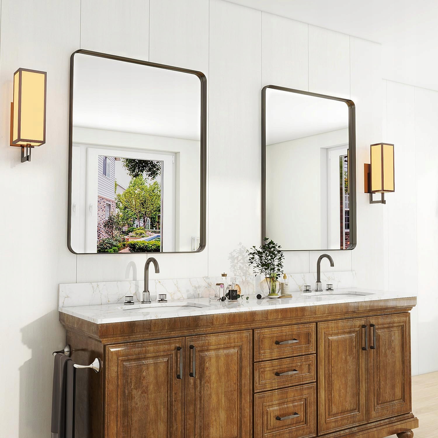- Łatwa instalacja: to głęboko oprawione lustro łazienkowe jest wyposażone w 2 pary prostych haczyków, które ułatwiają każdemu zawieszenie lustra na ścianie. Konstrukcja haczyka umożliwia zawieszenie poziome lub pionowe