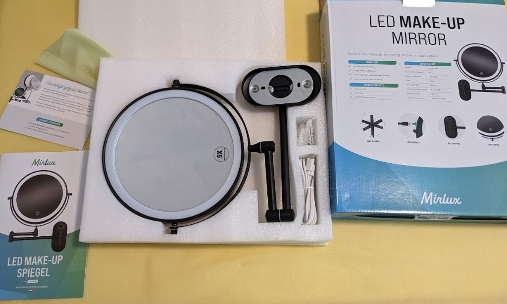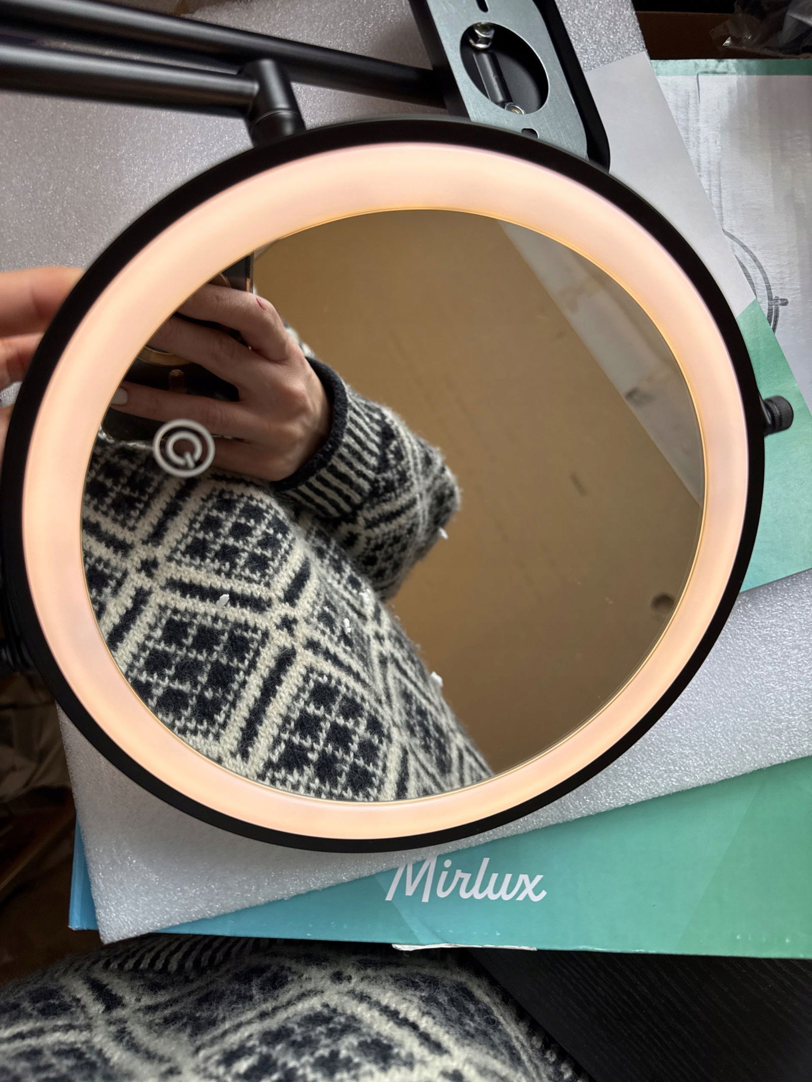 To dwustronne lustro kosmetyczne LED do montażu na ścianie łączy powiększenie 1x/5x, 3 tryby świecenia i elastyczne ramię, dzięki czemu dopasujesz je dokładnie do swoich potrzeb