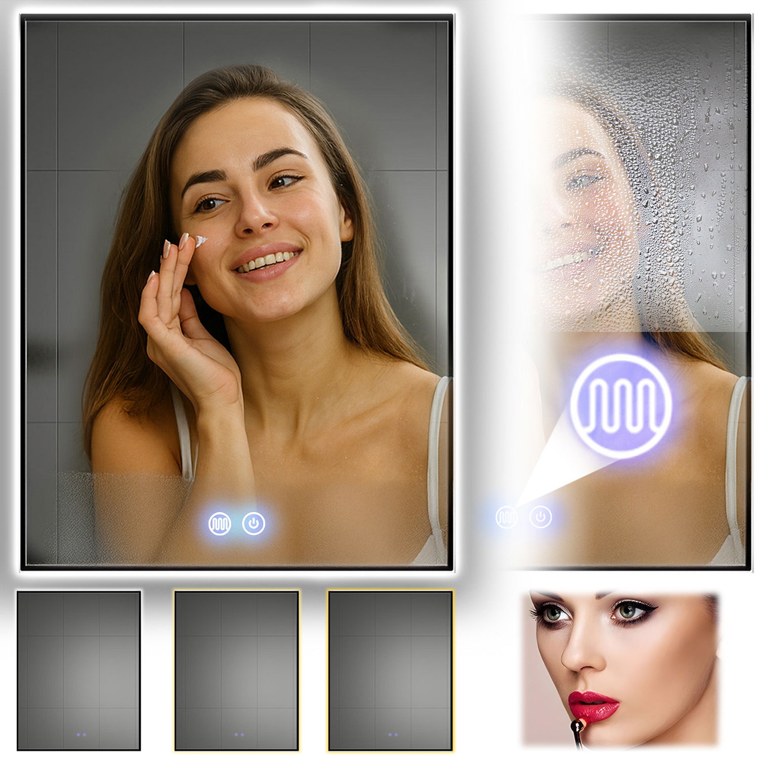 - Wbudowana funkcja Anti-Fog uruchamia delikatny system grzewczy, który zapobiega osadzaniu się pary wodnej na powierzchni lustra.