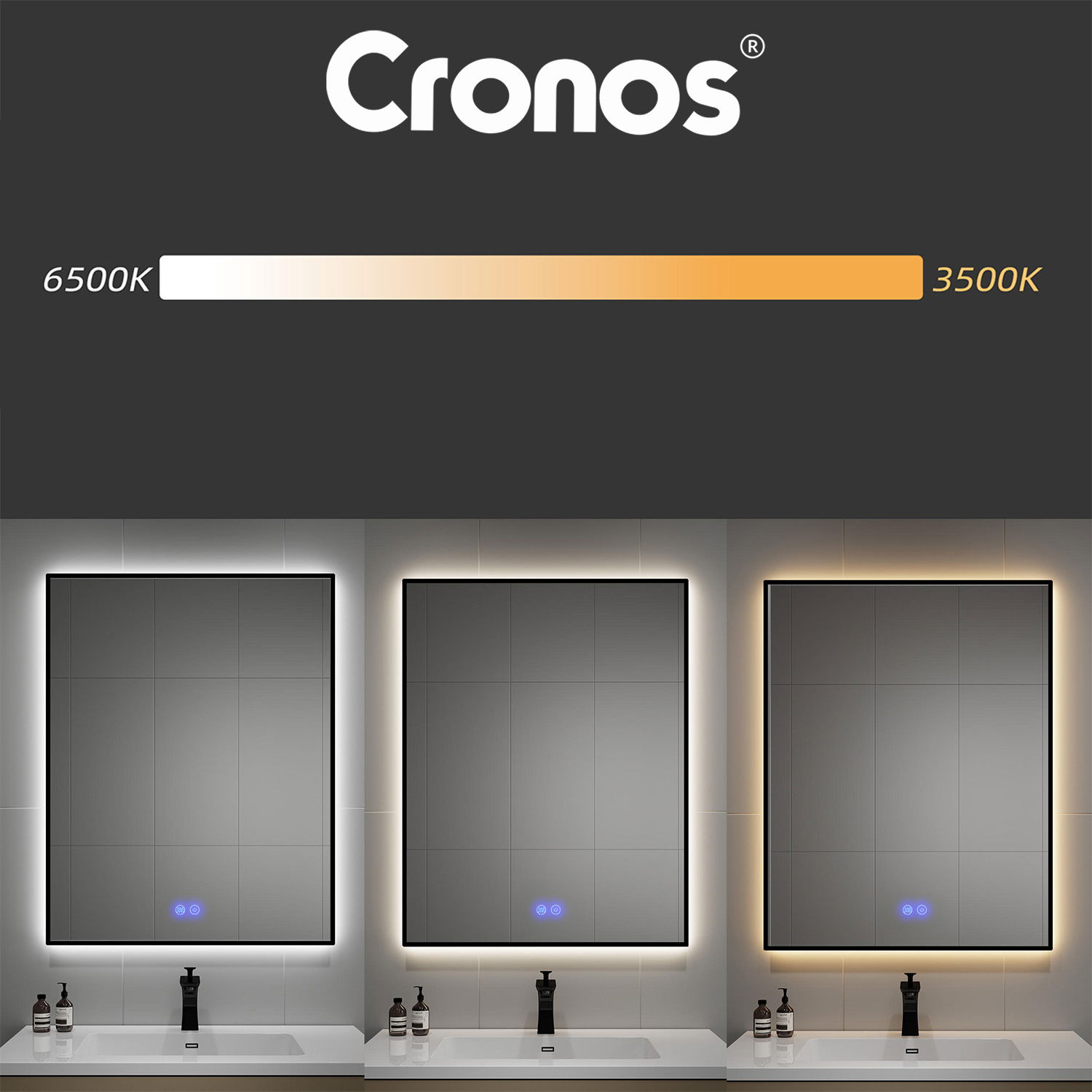 Nie zawsze potrzebujesz tego samego światła. Czasem chcesz idealnie jasne, chłodne oświetlenie do makijażu, a innym razem – ciepłe, relaksujące światło wieczorem. Cronos daje Ci wybór. Lustro oferuje trzy barwy światła LED: