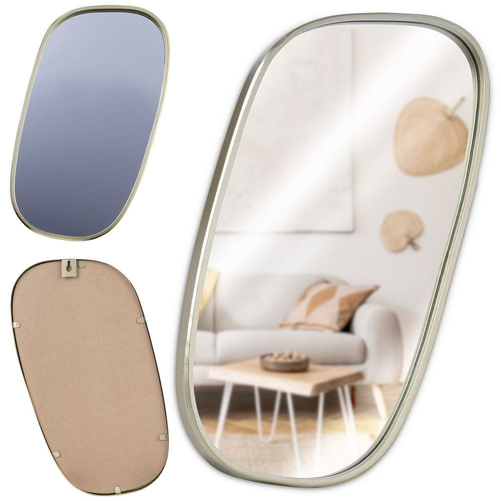 METALOWA RAMA - Rama wykonana z metalu w odcieniach szampańskiego złota, nadaje mu unikalny wygląd. Lustro zapewnia czyste i wyraźne odwzorowanie obrazu.