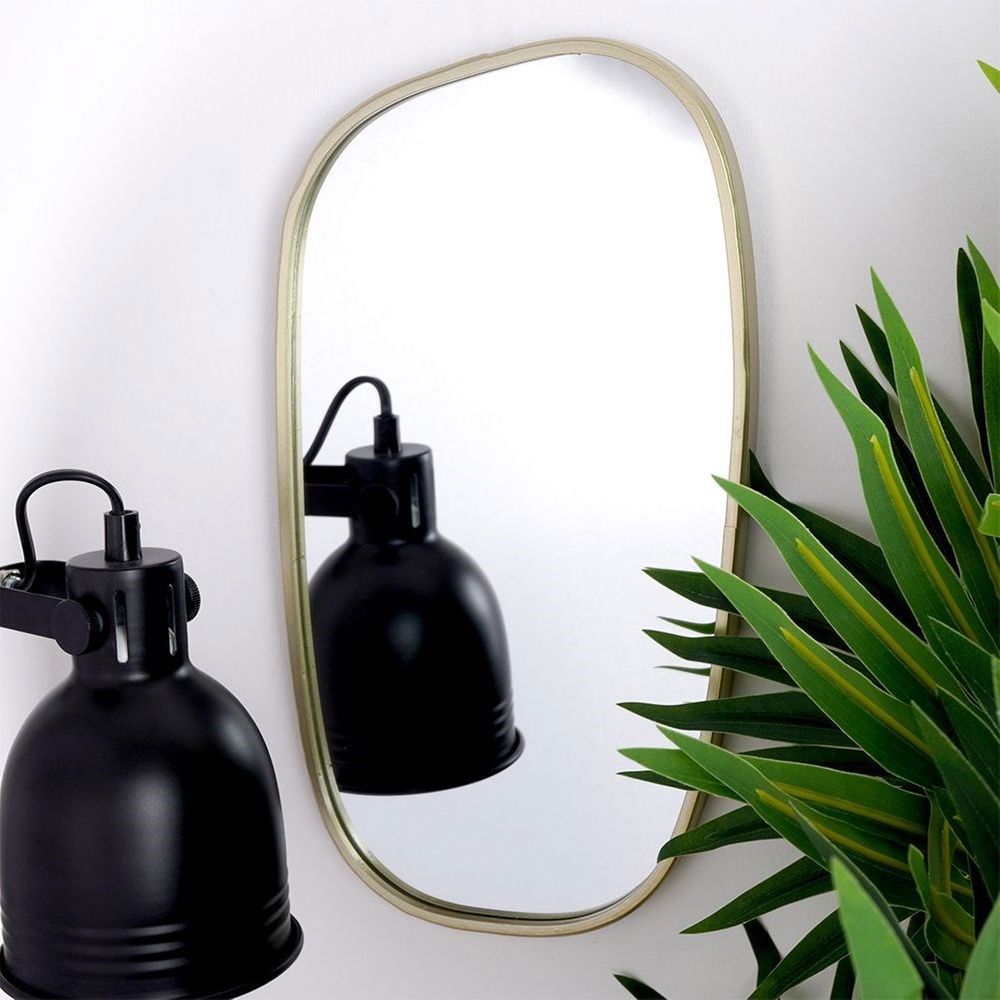 PRAKTYCZNE - Lustro ścienne w złotej ramie, posiada nieregularny kształt. Lustro ma wymiary 19,5 x 35 cm. Niezwykle efektownie prezentuje się w każdym pomieszczeniu.