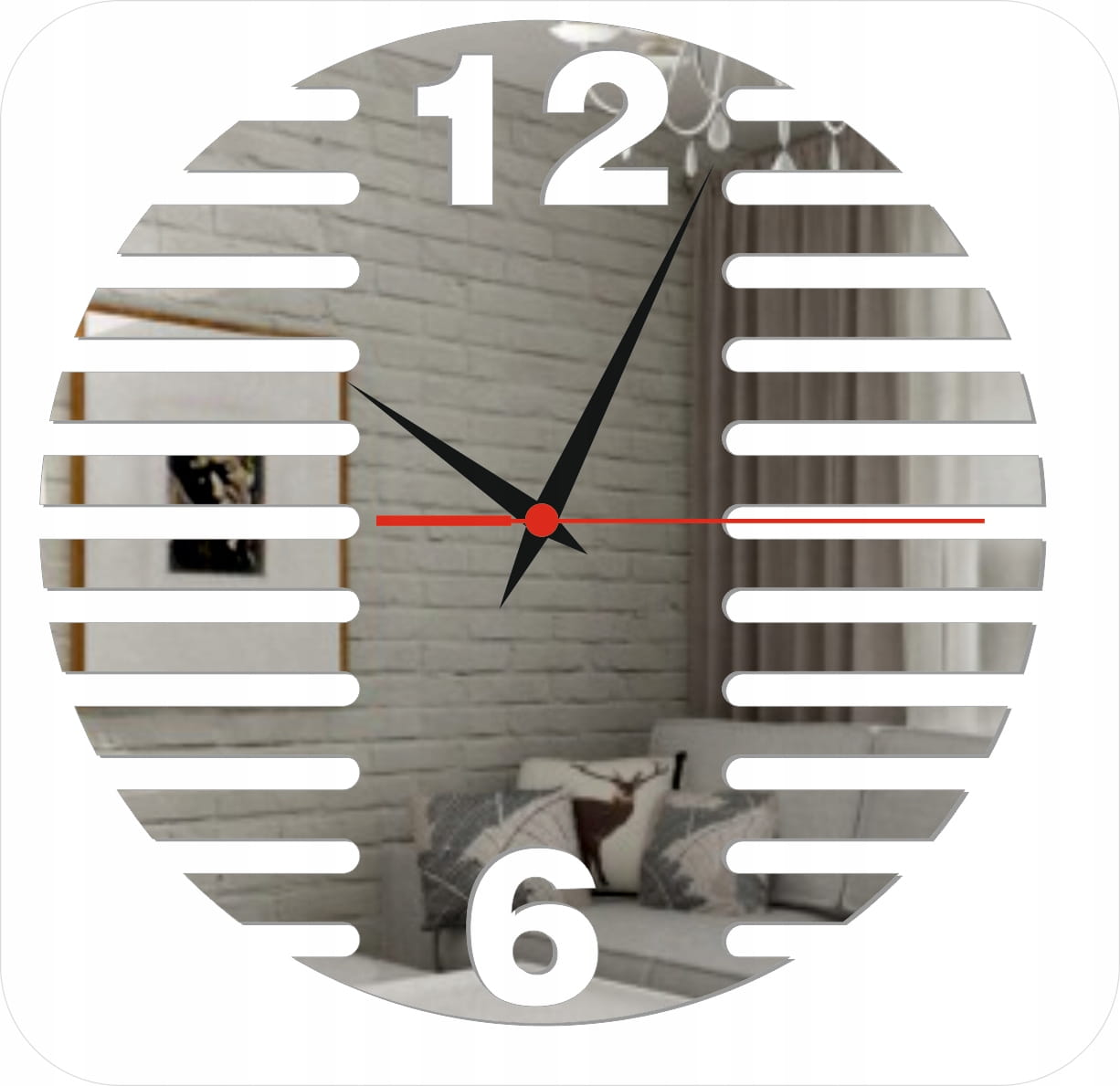 Zegar wykonany jest z wysokiej jakości lustra akrylowego, które zapewnia efekt eleganckiego połysku i wizualnego powiększenia przestrzeni. To trwała i bezpieczna alternatywa dla szkła, odporna na uszkodzenia i znacznie lżejsza, co umożliwia montaż na wszystkich rodzajach ścian.