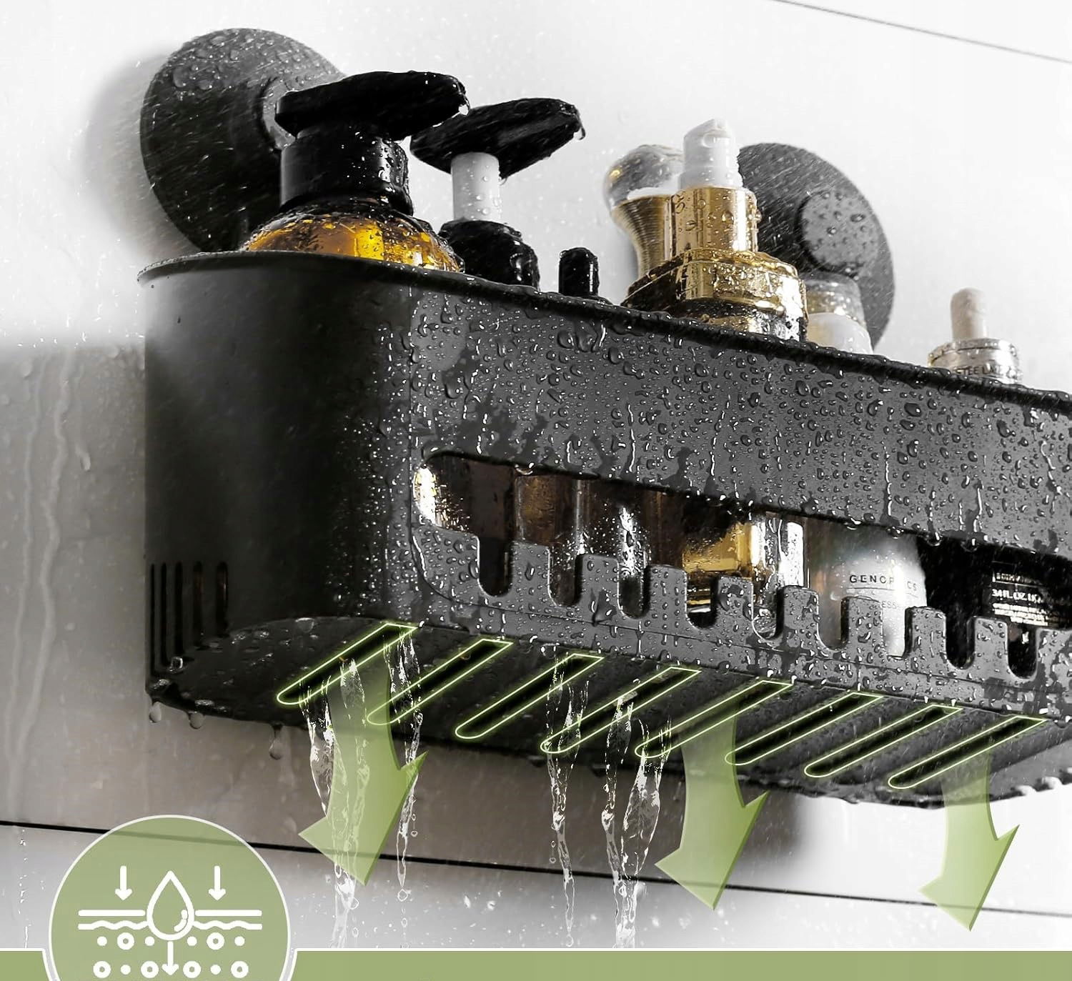 ✔️ Praktyczne rozwiązania: Otwory drenażowe na dnie koszyka pozwalają na efektywne odprowadzanie wody, utrzymując akcesoria suche i czyste. Z przodu znajdują się karbowane haczyki, idealne do zawieszania mydła, gąbek czy innych drobiazgów.