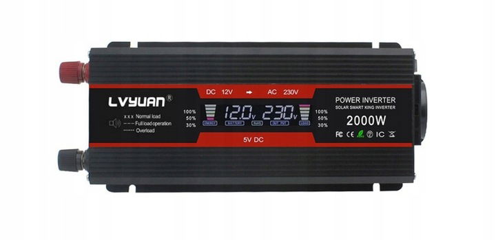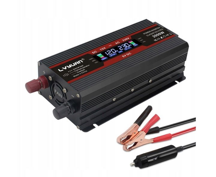 LVYUAN PRZETWORNICA NAPIĘCIA 12V 220V 2000W INWERTER 2X USB AUTO CAMPING
