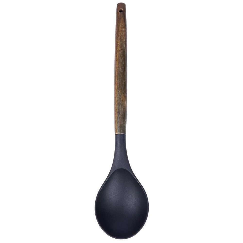 SOLIDNA - Wykonana z wytrzymałego tworzywa termoplastycznego PBT w czarnym kolorze, a uchwyt wykonany z drewna akacjowego. Odporna na wysokie temperatury do max. 180°C.