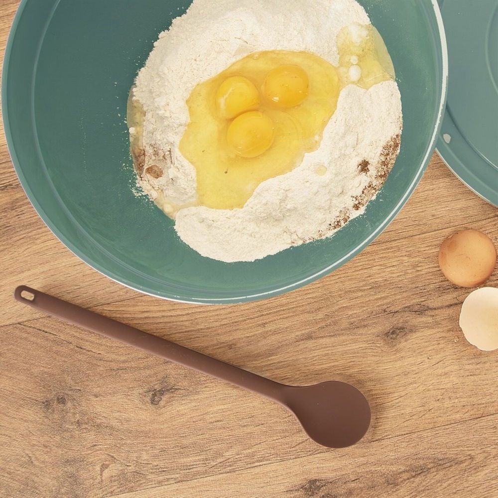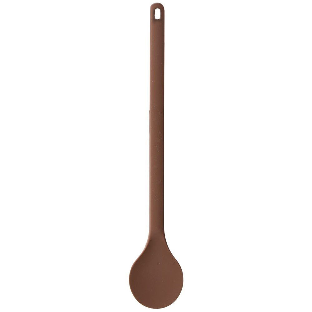 SILIKONOWA - Wykonana z najwyższej jakości silikonu w brązowym kolorze, odpornego na temperatury od -40°C do 220°C. Wewnątrz łyżki znajduje się metalowe zbrojenie dla utrzymania odpowiedniej sztywności.