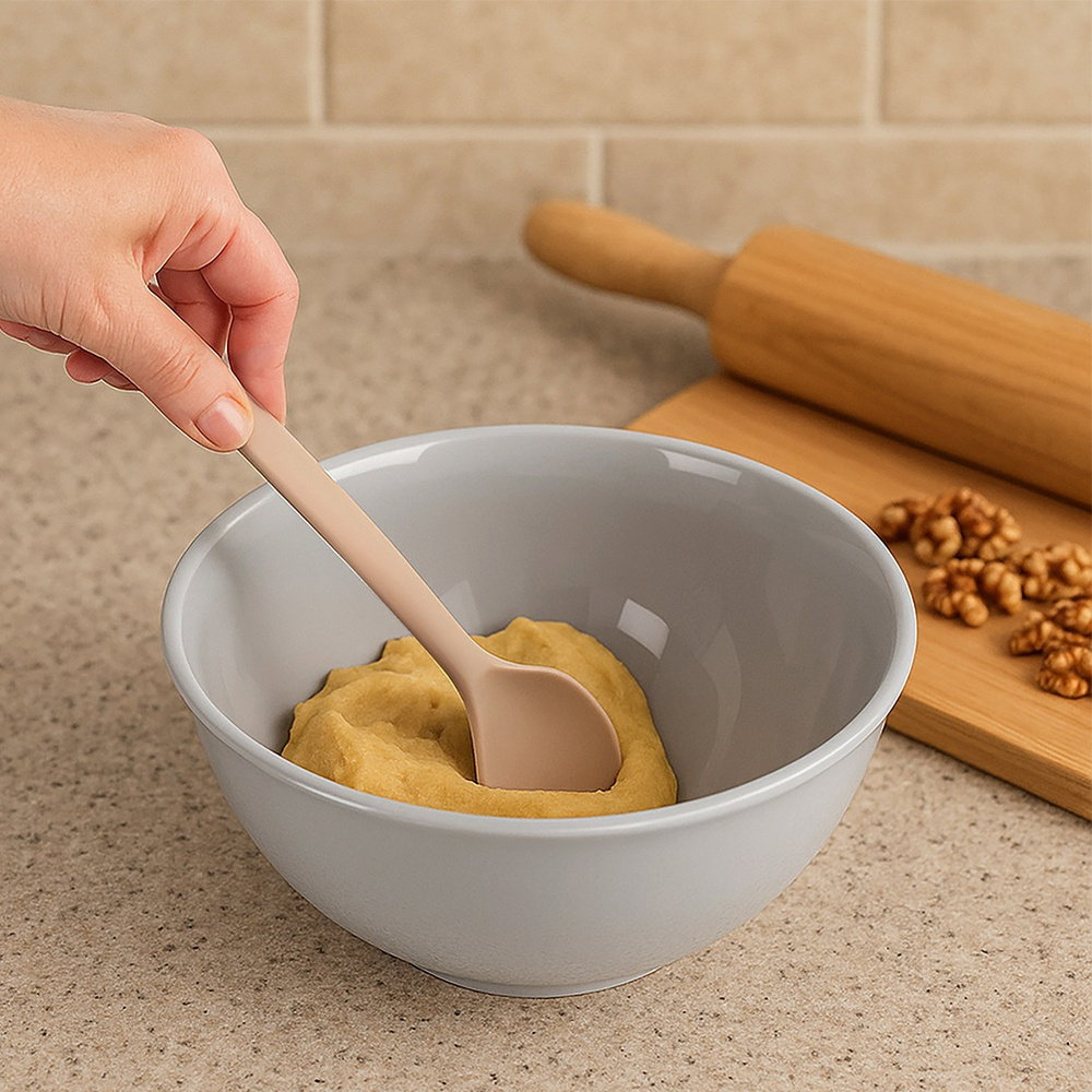 BEZPIECZNA DLA NACZYŃ - Łyżka jest bezpieczna dla naczyń teflonowych, granitowych, ceramicznych i z innymi powłokami nieprzywierającymi. Sprawdzi się również przy pracy z naczyniami szklanymi.