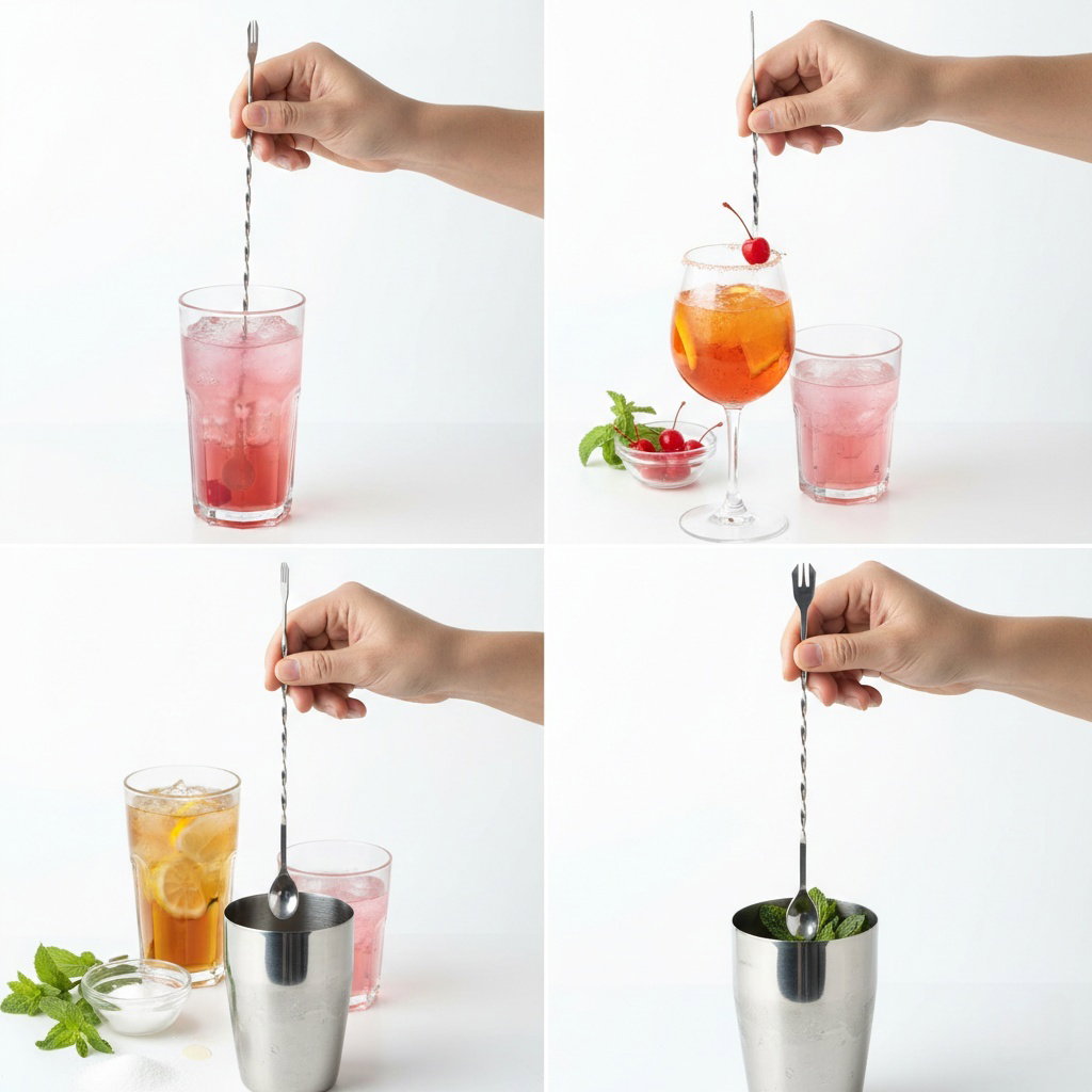 Łyżka Z Widelcem Do Koktajli Drinków Kręcona Barmańska Srebrna 32 Cm