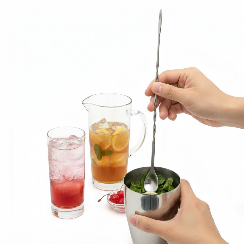 Podnieś swoje umiejętności barmańskie na wyższy poziom! Ta profesjonalna, długa łyżka to podstawowe narzędzie każdego miłośnika koktajli. Dzięki długości aż 32 cm bez trudu dosięgniesz dna nawet bardzo wysokich szklanek, dzbanków czy shakerów.