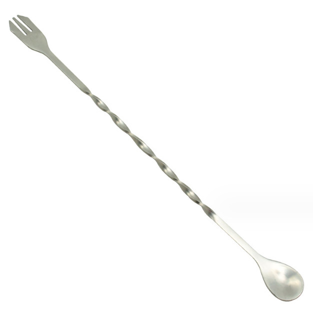 Łyżka z widelcem do koktajli drinków kręcona barmańska srebrna 32 cm